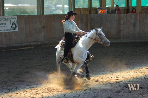 Hier nahm man die Cutter des NCHA mit ins Boot, die man ja im Allgemeinen als „schwierig“ bezeichnet. Davon konnte man in Worfelden nichts feststellen. Die eigens von weit her angereisten Mitglieder des NCHA verbreiteten eine gute Stimmung und lieferten einen ausgezeichneten Sport. Hans Kuhn Jr., der NCHA Judge aus dem Saarland, richtete die verschiedenen Klassen, lediglich bei der Supreme-Klasse standen ihm die Appaloosa-Richter zur Seite.