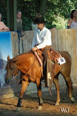 Was in so manchem Pferd schlummert, kann man nur durch Probieren erfahren. So ging es dann auch Jessica Pesi, die den Pauli O Lena-gezogenen Quarter Horse Hengst Doctor Pauli (u.a. Europameister Working Cowhorse) in Worfelden vorstellte. Der eigentlich aus einen Cutting/Reining/Working Cowhorse-Linie stammenden Hengst zeigte sich als wahrer Pleasure-Freund und verschaffte dem Team einen 1. Platz in der Amateur Western Pleasure Open. Aber nichts desto trotz gewann er noch die Supreme Reining und zeigte auch im Trail ein gewisse Leidenschaft.