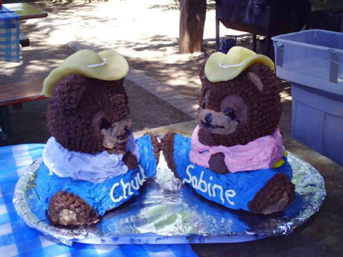 Und für ein weiteres Highlight sorgte seine Ehefrau Uschi, die wie immer eine Torte für den jeweiligen Kurs fabrizierte, die aber in diesem Jahr nicht angeschnitten wurde, sondern mit Chuck und Sabine den Weg nach Österreich antrat. Chuck war nicht dazu zu bewegen, auch nur ein „Ohr“ dieser Torte zu opfern.
