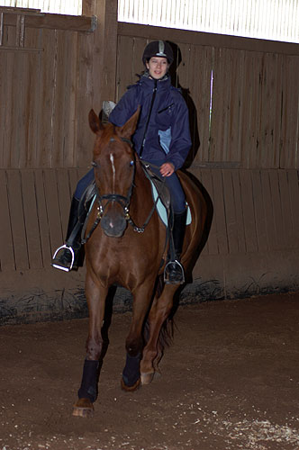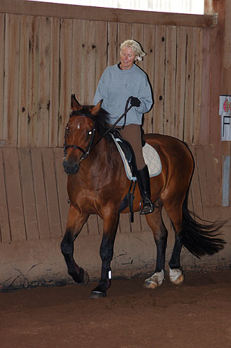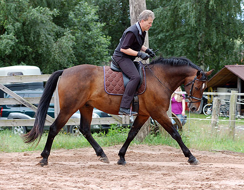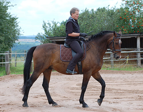 Derzeit wird Wolkentänzer nur mit Tricks und ohne jeglichen Beineinsatz geritten. Beim geringsten Kontaktversuch mit dem Schenkel, steigt der Kandidat und gerät in Panik.