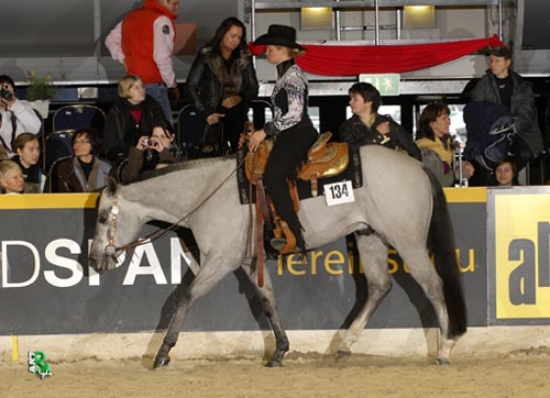 Knapp dahinter überzeugte die Nachzucht von „CL Spanish Skip Zip“. Die Fohlen des Reserve Top Sire wurden durchschnittlich mit einer Note von 8,10 bewertet. Keines der Kleinen schnitt dabei allerdings schlechter ab als 8,0. Der ausdrucksstarke sorrelfarbene Hengst, im Besitz von Volker Laves von der Circle L Ranch in Wenden, ist ein Sohn des European Champions Senior Western Pleasure Zippo Pilot und stammt aus der All Time Ovator Cup Leading Dam „CL Spanish Skip“. Neben einem AQHA ROM in Open Halter und diversen Champion und Deutschen Meistertiteln wurde er im Jahr 2009 mit einer Traumnote von 8,38 von der DQHA gekört!